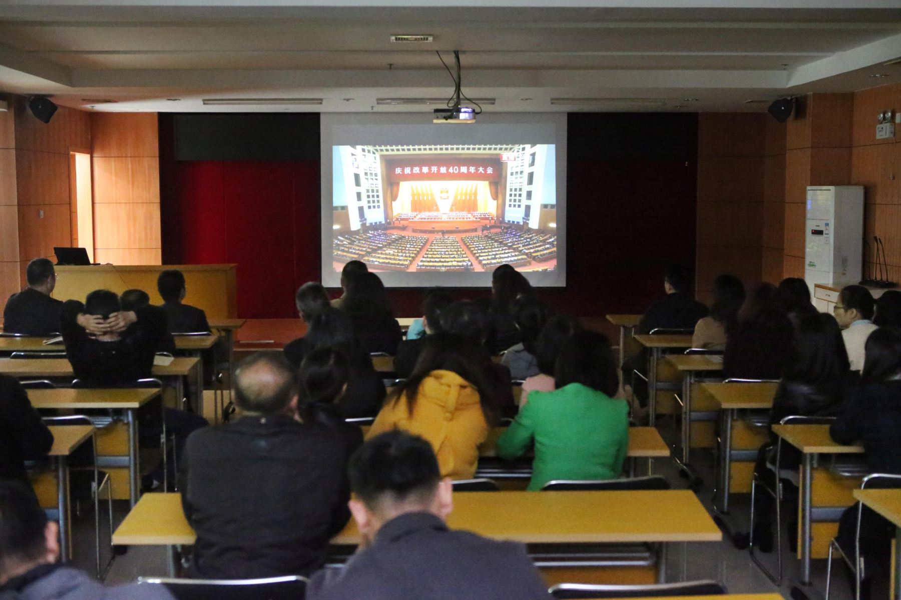 2018年12月18日上午,公司黨委組織班子成員、黨員、管理人員300多人以黨總支或黨支部為單位集中觀看中央慶祝改革開(kāi)放40周年大會(huì)直播盛況。