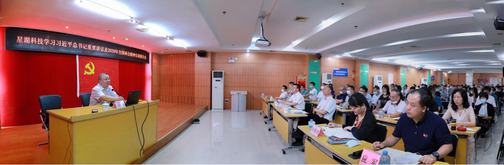 7月1日,公司舉辦學習宣傳貫徹習近平總書記重要講話精神及2020 年全國兩會精神宣講報告會,邀請市委講師團教研室主任劉紅星作專題輔導報告。公司班子成員、總助、車間主任及以上管理人員、黨員代表160多人參加,公司黨委副書記吳柱鑫主持會議。
