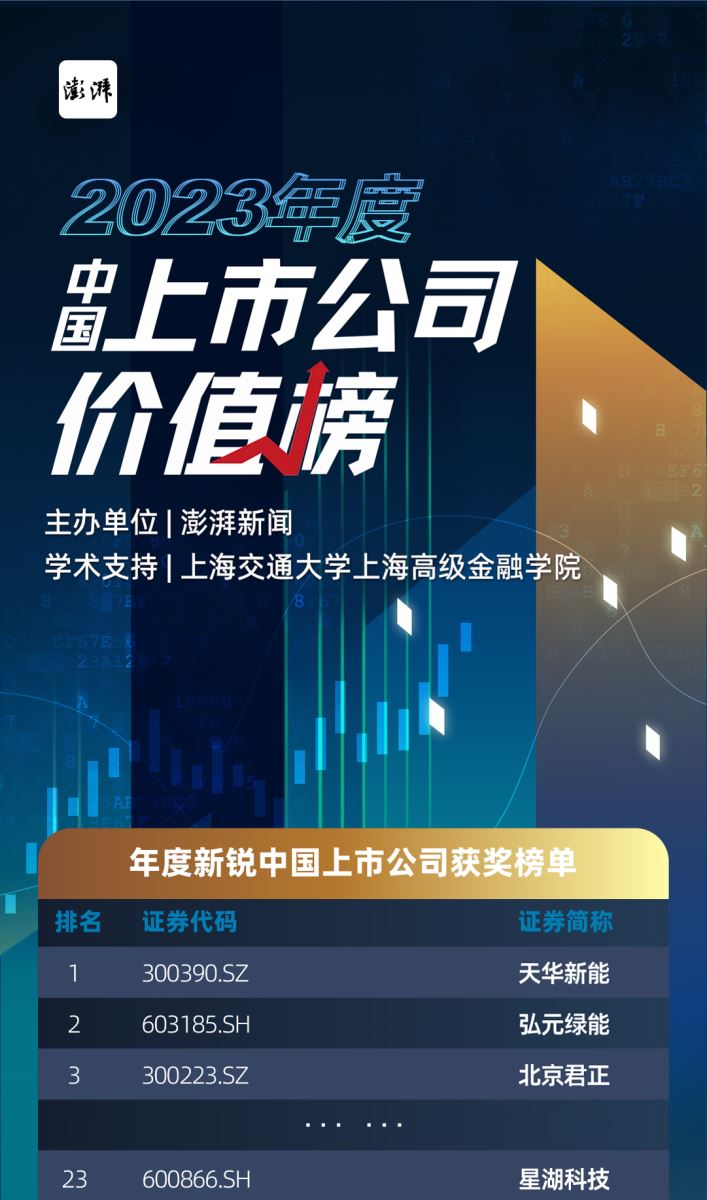 12月26日,由澎湃新聞發(fā)起、上海交通大學(xué)上海高級(jí)金融學(xué)院學(xué)術(shù)支持的“2023年度中國(guó)上市公司價(jià)值榜”(以下簡(jiǎn)稱“價(jià)值榜”),歷時(shí)近8個(gè)月的自薦征集與初審、復(fù)審,最終評(píng)定結(jié)果正式出爐,星湖科技上榜“年度新銳中國(guó)上市公司”。
